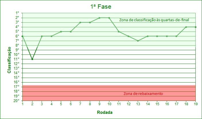 29/04/12 - GUARANI 3 X 1 AAPP - 15.179 Variação da classificação do GUARANI ao longo da 1ª Fase, rodada a rodada:
