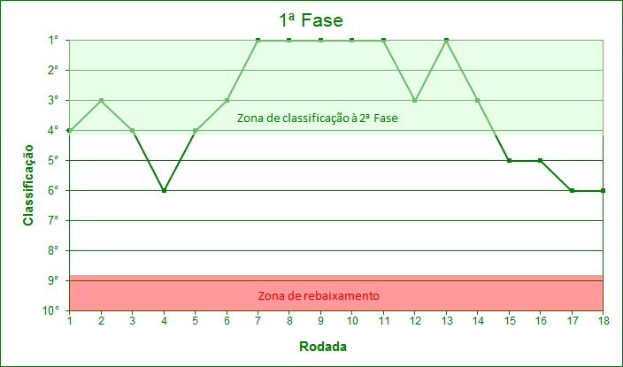29/09/13 - GUARANI 1 X 2 Betim - 4.378 Variação da classificação do GUARANI ao longo da 1ª Fase, rodada a rodada: